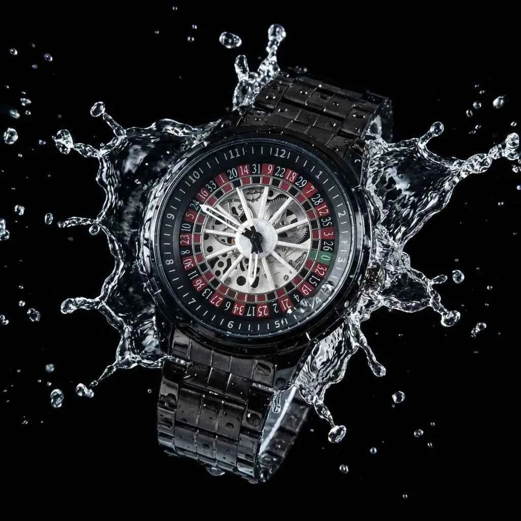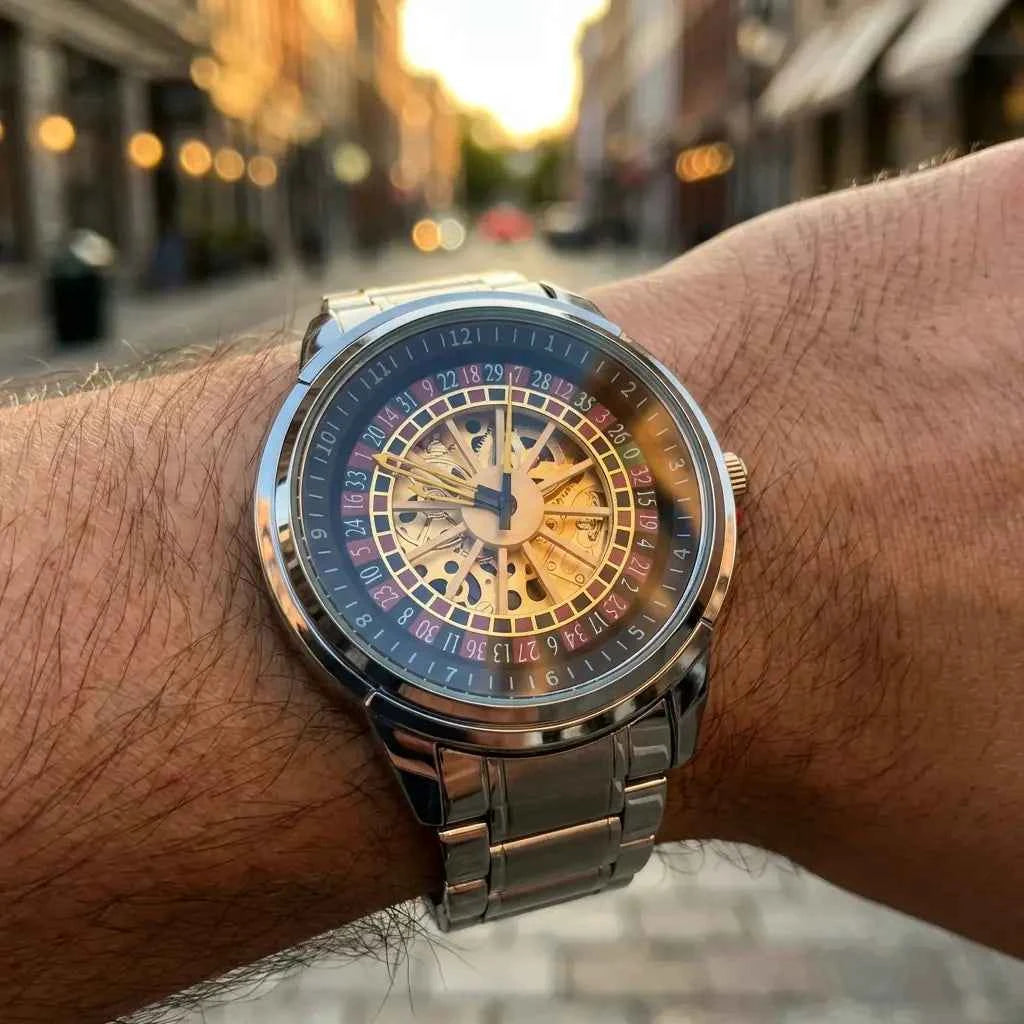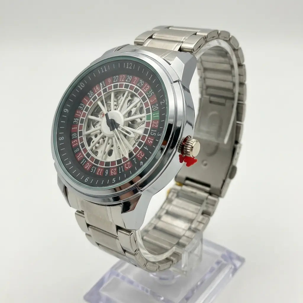Baisheng Skeleton Watch Men 360 Rotating Dial Quartz