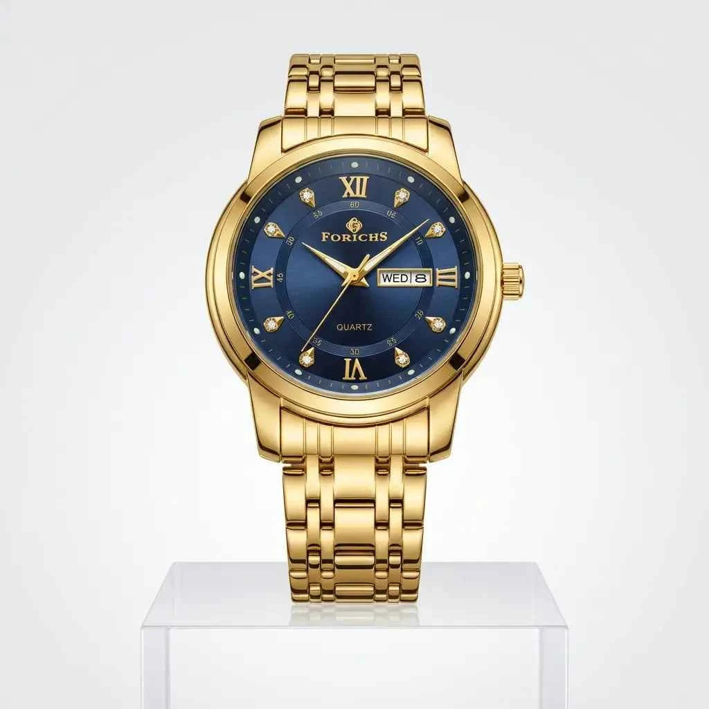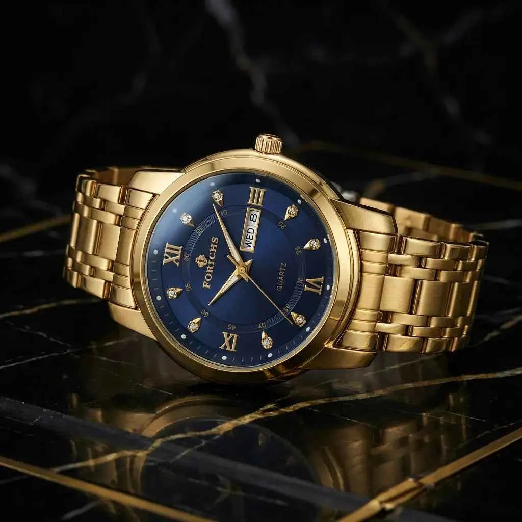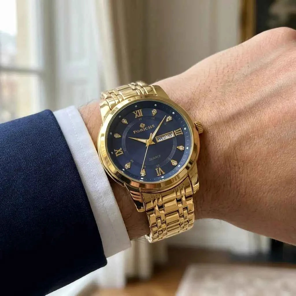 Forichs Day Date Watch Men Luminous Glow Dark Quartz