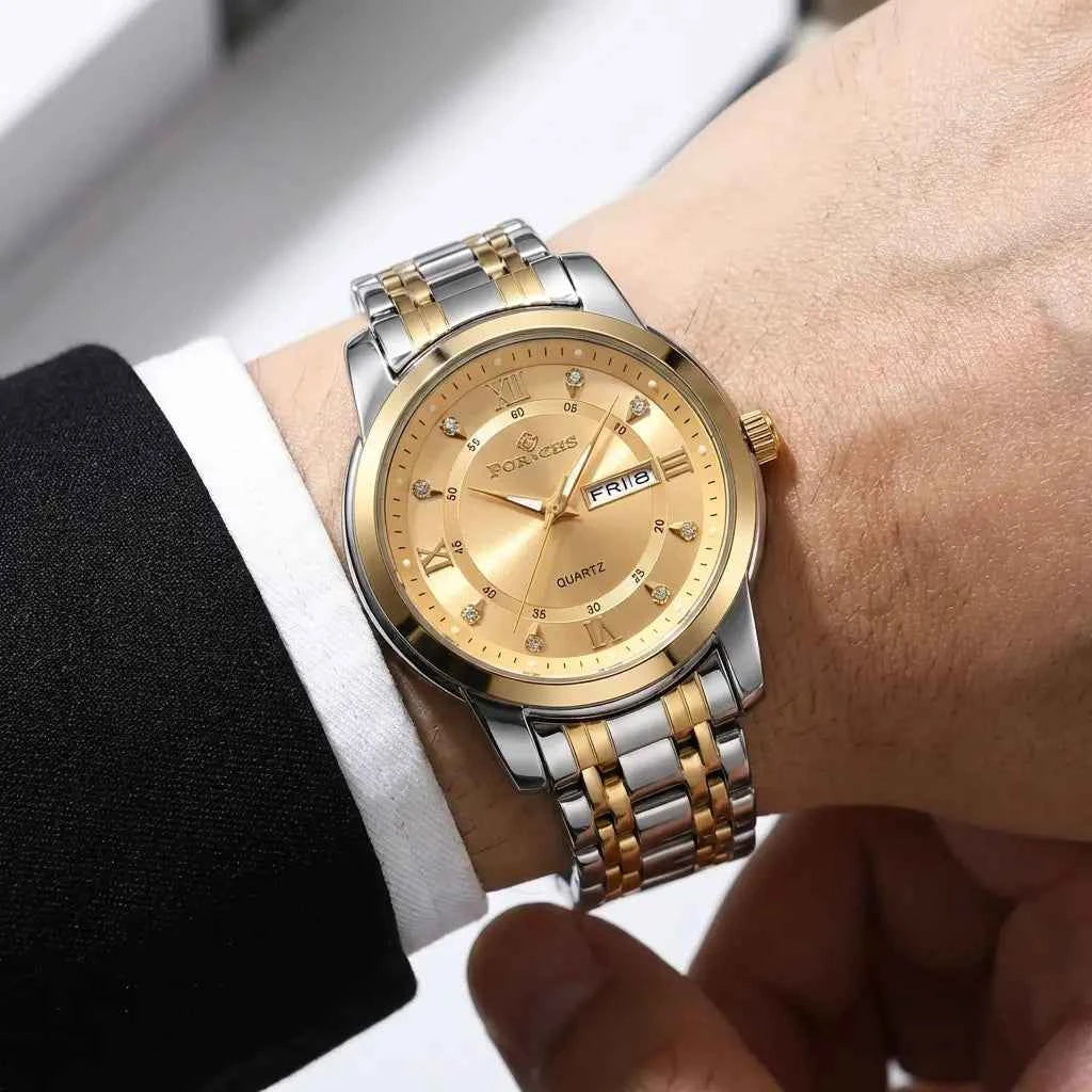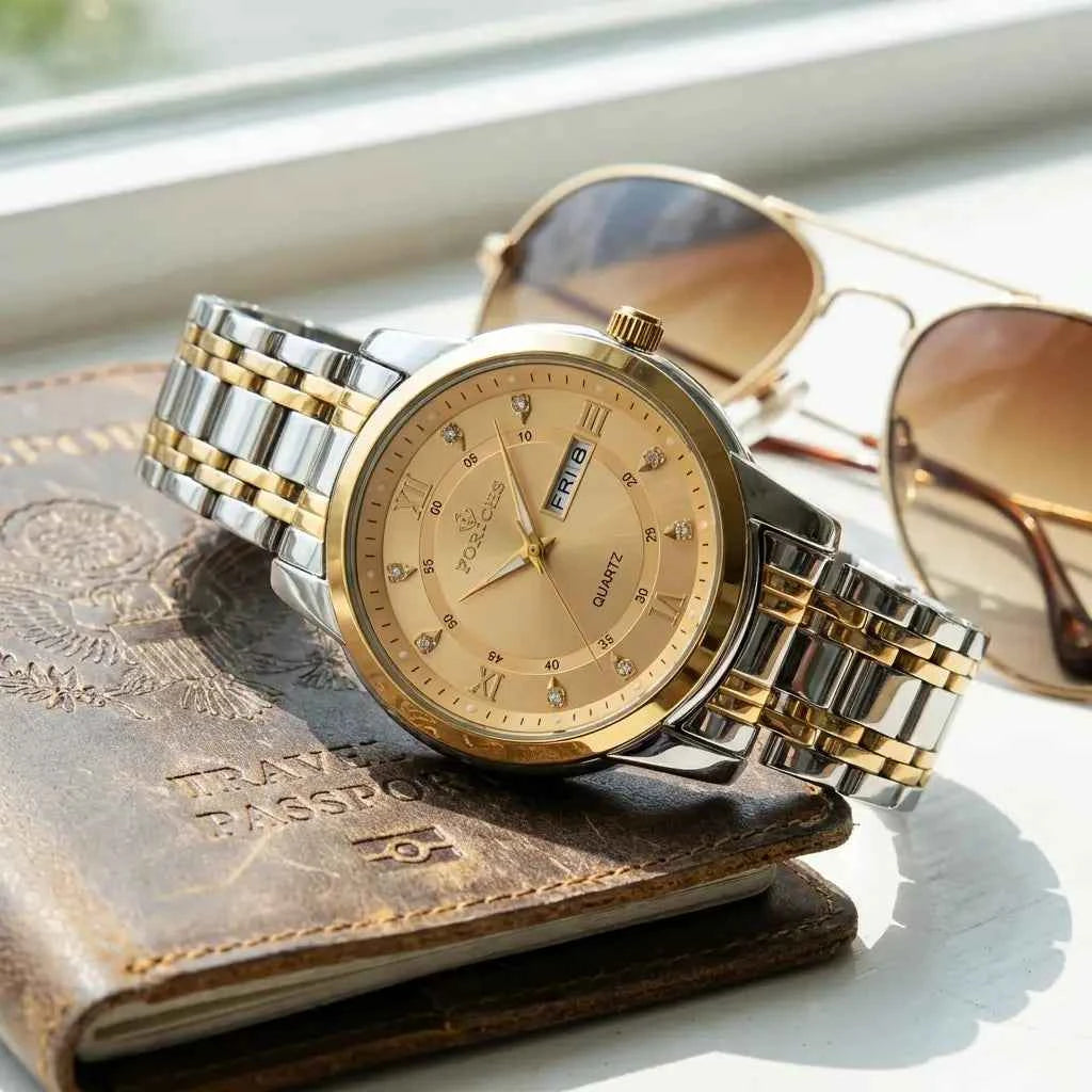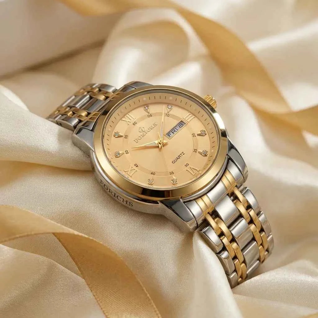 Forichs Day Date Watch Men Luminous Glow Dark Quartz